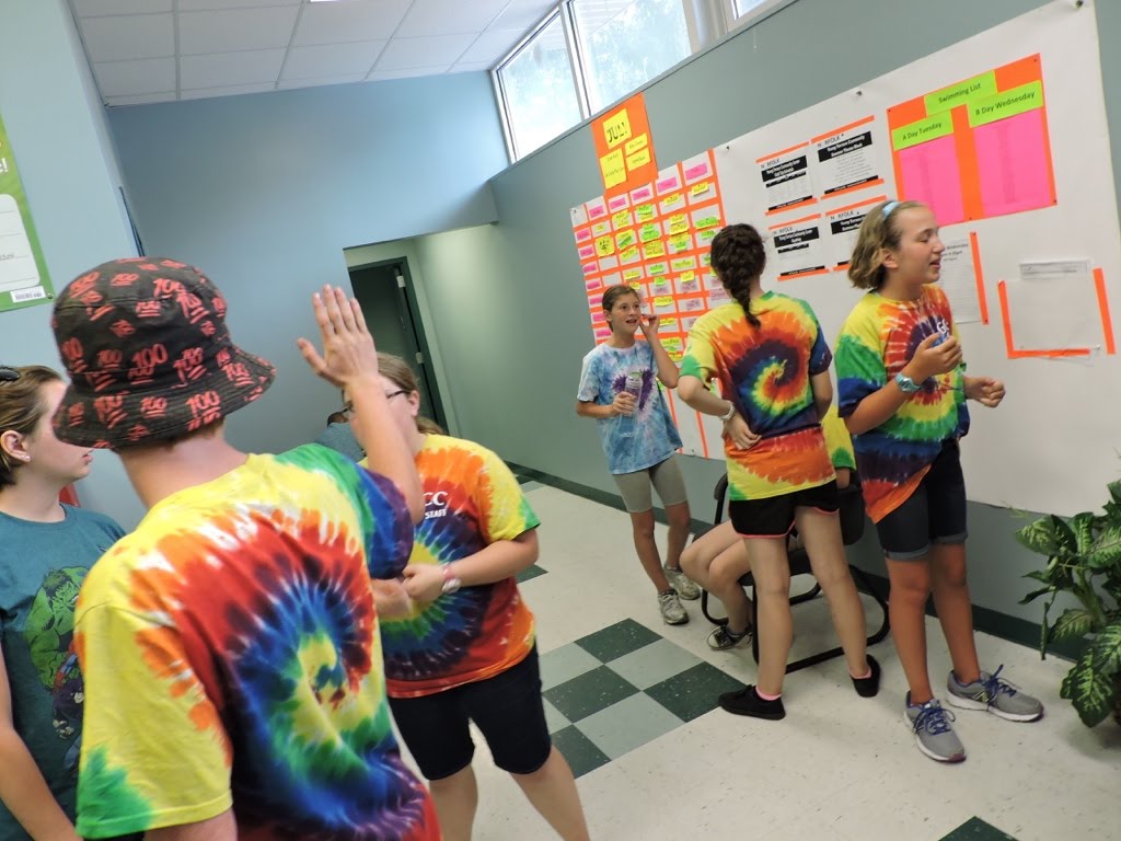 Afterwards, students are divided up into teams: one group is in charge of games, another crafts and music, and a third story and snacks. They then spend the rest of the day planning what they are going to do with their team members.